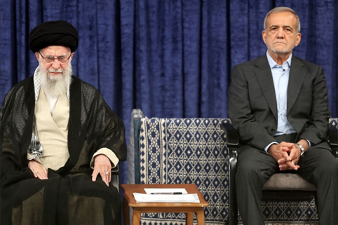 Pic: Leader of the Islamic Revolution and Republic of Iran as-Sayyid ‘Alī Hāmeneī and President Mas‘ūd Pezeškiyān (archive)