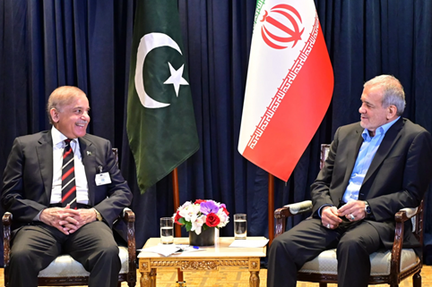 Pic: Iranian President Mas‘ūd Pezeškiyān and Pakistani Prime Minister Šahbāz Šarīf (archive)