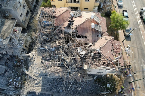 Kép: Egy iráni bombázás nyomai “Ramat Gan”-ban, “Tel-Avivtól” keletre a “Hű Ígéret 3” során (AFP)