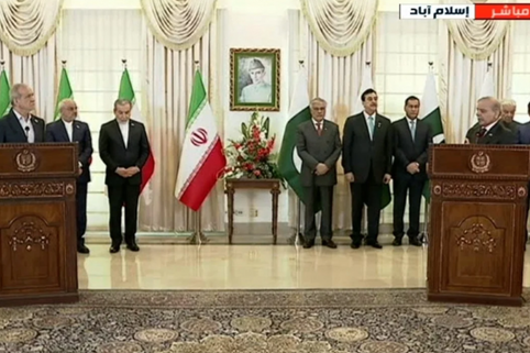 الرئيس الإيراني ورئيس الحكومة الباكستانية يعقدان مؤتمراً صحافياً مشتركاً بعد لقائهما في إسلام آباد، وفيه يعلنان. توقيع اتفاقيات من شأنها أن ترفع التعاون التجاري بين البلدين إلى 10 مليارات دولار